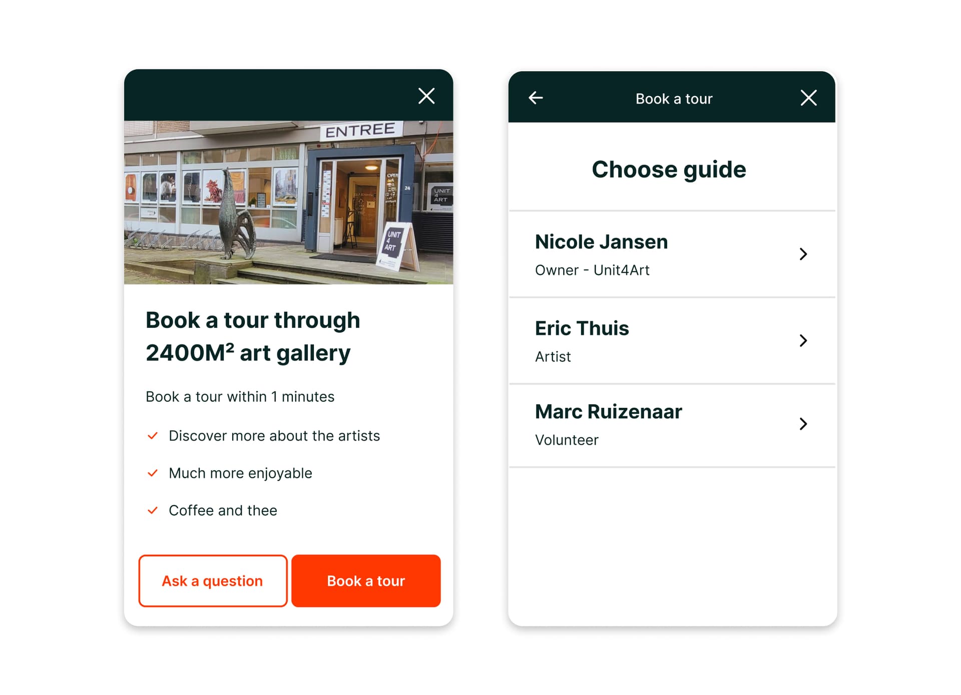 Art deserves to be seen and experienced. Our mission is to connect artists and galleries with the right audience, making it effortless for people to discover and appreciate your work. With our booking widget, we help bring more visitors to your gallery, so you can focus on creating.